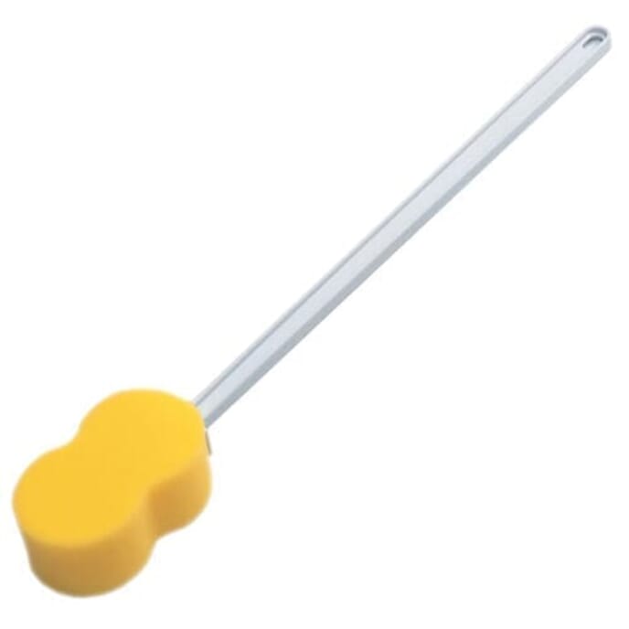 The long plastic handle can be gently heated and angled to suit the user’s preferred position, providing a personalised reach that supports independent washing. To improve hygiene and longevity, the sponge has been treated with an anti-bacterial agent, making it suitable for regular use in home or care environments.