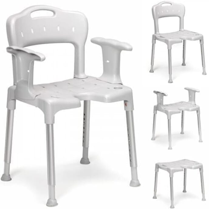 The Etac Swift Shower Chair with Cut-Out Seat is part of Etac’s award-winning range of modular shower chairs, designed to combine functionality, safety, and elegant Scandinavian style. Ideal for users who require extra support and stability while showering, this versatile chair can be easily adapted to individual needs — providing both comfort and confidence in the bathroom.