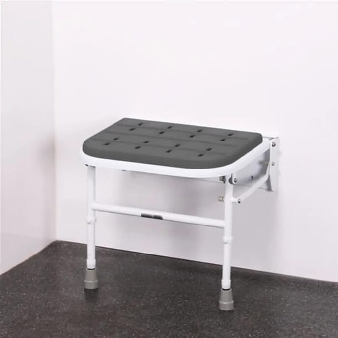 When not in use, the seat folds flat against the wall, making it perfect for smaller bathrooms or shared shower spaces. The combination of epoxy-coated steel legs and a strong aluminium wall fixing plate ensures exceptional strength and durability, supporting users up to 160 kg (25 st).