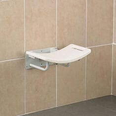 - Wall mounted shower seat designed for seated showering