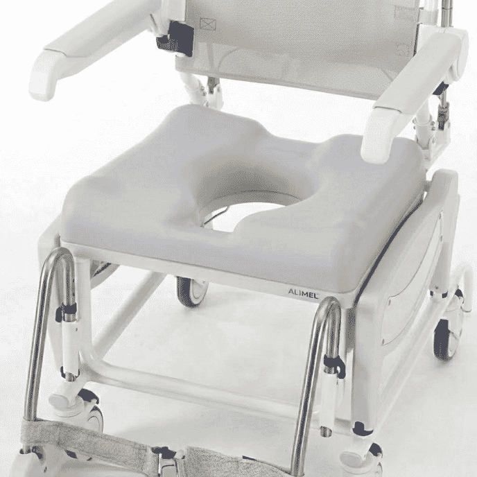 Different seat and insert options allow the chair to be configured depending on whether the commode function is required. Soft seats provide additional cushioning for everyday showering and toileting, while seat inserts allow the aperture to be covered when the commode function is not needed. A universal closed-seat option is also available for situations where a smooth seating surface is preferred.