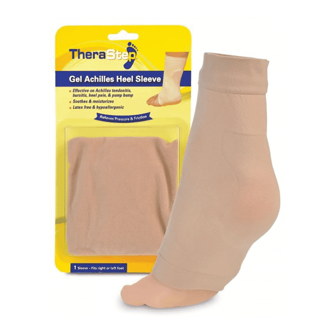 The TheraStep Gel Achilles Heel Sleeve is designed to help cushion and protect the back of the heel and Achilles tendon area from pressure, friction and impact during everyday movement. The lightweight, toeless sleeve fits comfortably around the heel and ankle, helping to reduce irritation that can occur from footwear or repetitive activity.