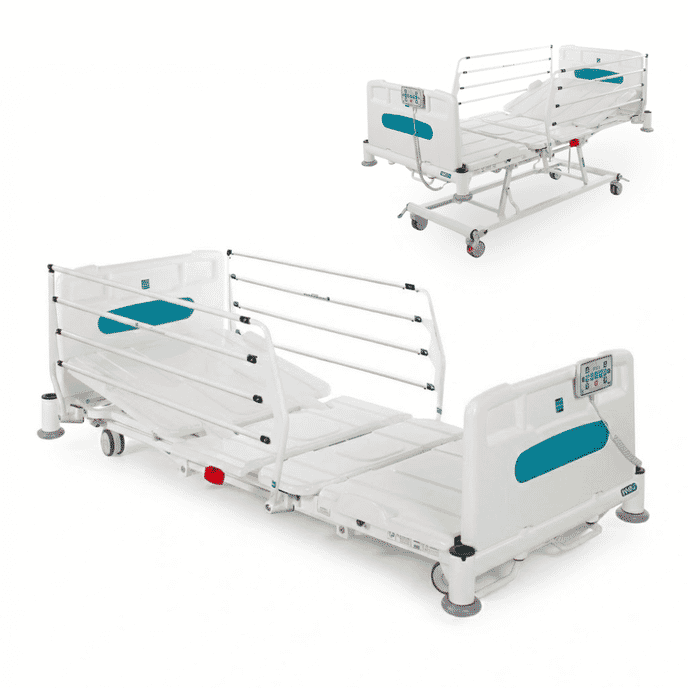 The INNOV8 Low Bed with High Cantilever Side Rails is designed to support patient safety while delivering full clinical functionality. With an exceptionally low minimum platform height of just 22.5cm, it helps reduce the risk and impact of falls, making it particularly suitable for hospital wards, high dependency environments, and settings where falls prevention is a priority.