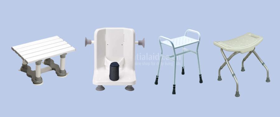 The shower stools themselves come in a variety of styles, some have a simple flat seat, others have a curved seat, some have a back and/or armrests for extra security.