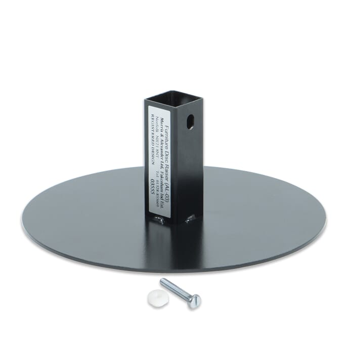 - The Furniture Disc Raiser is a single leg raiser with a thin, trip-resistant base. Several of these can be used or it is often used with the Mk2 above to support a 5th leg.