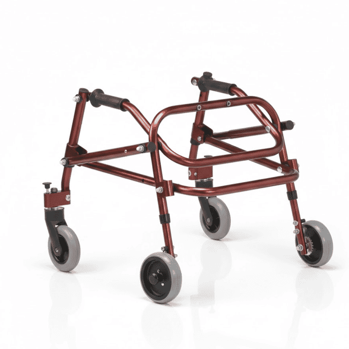 The Nimbo Posture Walker is a lightweight posterior walking frame designed to support users from behind, encouraging a more upright posture and improved trunk extension. By positioning the arms naturally at the user’s sides, it promotes a smoother, more fluid walking pattern and greater confidence during mobility. This makes it particularly suitable for children, young people, and adults who benefit from postural support while walking, both indoors and outdoors.