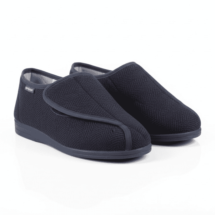 The Dunlop Albert Gents Slippers in Blue are designed with comfort and practicality in mind, making them ideal for men with wide or swollen feet. Their wide opening and easy hook and loop fastening make them simple to put on and remove, even for thos...4 Options from£17.90inc VAT -