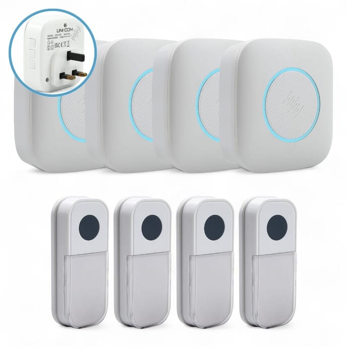 The Uni-Com Extra Loud Door Chime is designed for larger homes, busy environments, or users with hearing difficulties. Delivering an impressive 98dB sound output with adjustable volume control, it ensures you never miss a visitor. Completely wireless...3 Options from£14.40inc VAT -