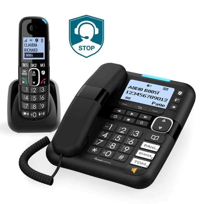 Both the base and headset of the Amplicomms Bigtel 1580 Combo can be used hands-free with fully adjustable volume control and feature a large-high-quality graphic display for easy viewing.