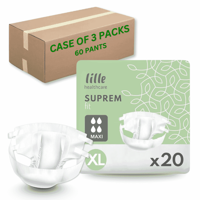 Lille Suprem Fit Maxi all-in-one briefs are designed for people who require a very high level of absorbency along with a secure and comfortable fit. Suitable for heavy to severe urinary and faecal incontinence, these all-in-one briefs provide dependable protection for both day and night use.