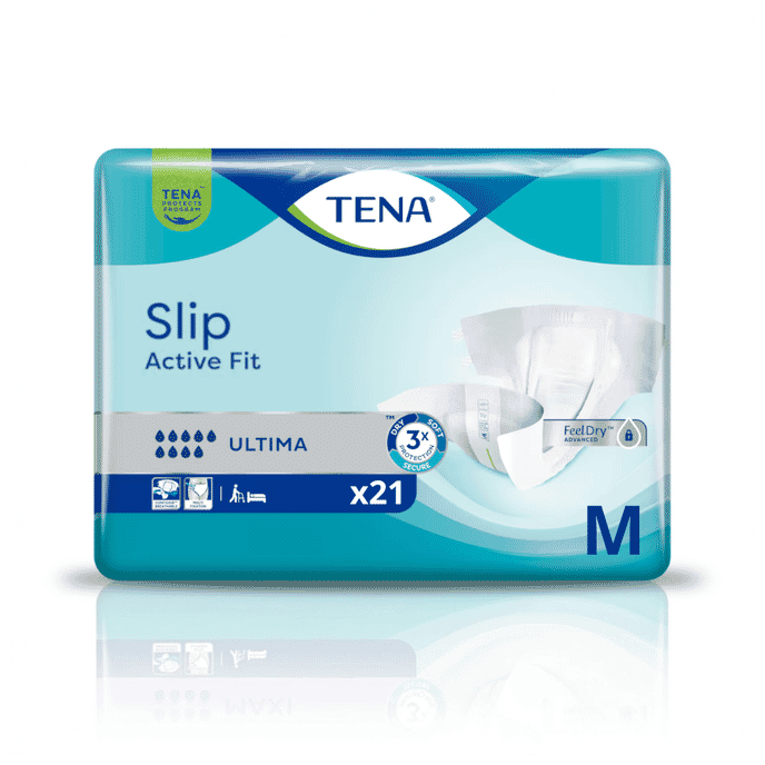TENA Slip Active Fit Ultima are unisex all in one incontinence products designed for people with an active lifestyle who require very high protection for severe incontinence. Featuring fast acting absorption, effective odour control and Easy Fix fastening, they provide a secure and practical solution for everyday wear while supporting comfort and discretion.