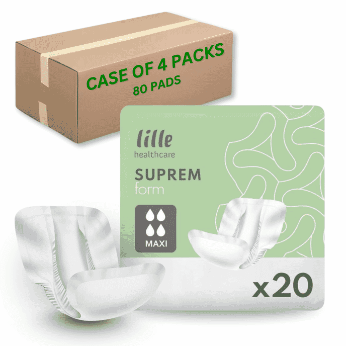 Lille Suprem Form pads are designed to provide a close body fit and rapid absorption for people managing moderate to heavy incontinence, including urinary incontinence and faecal smearing. These shaped pads are intended to be worn with reusable fixation pants, helping to keep the pad securely in place and reducing the risk of leaks during daily use.