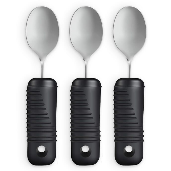 - Promotes independence at mealtimes for people with arthritis, Parkinson’s, or reduced dexterity.