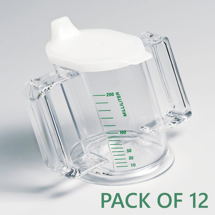 Review by J Holiday Posted on 01/04/2021 20:56:52The cup makes drinking easier when unable to tip head back, the lid/spout prevents spills and the transparency helps to monitor fluid intake. The interior angle between side and base is tricky to clean adequately, the large handle grips and the large flat base are well thought out. -