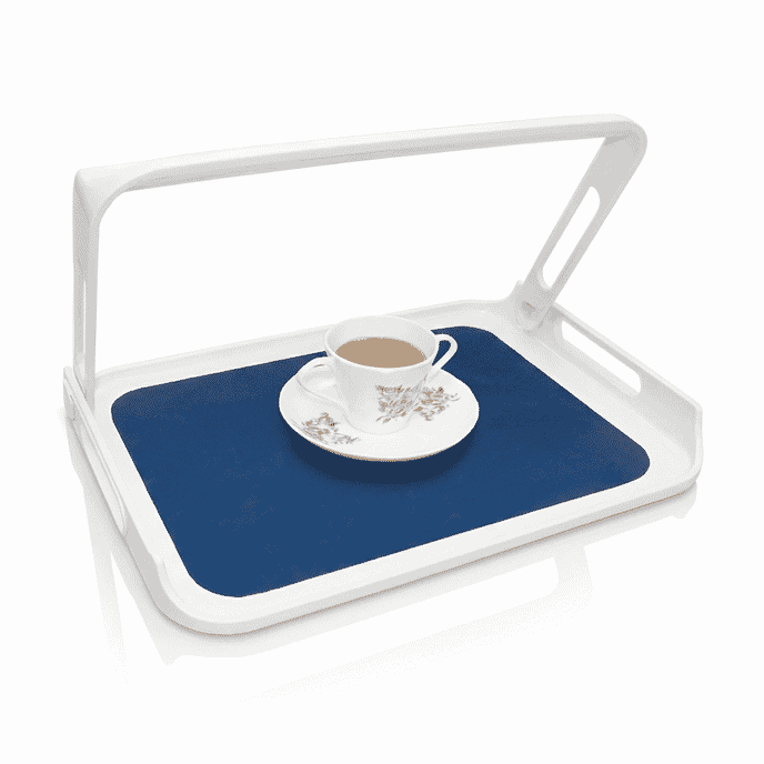 A removable non slip mat sits neatly on the tray surface, gripping plates, mugs and bowls to prevent them from sliding during transport. This added stability is especially useful when carrying hot drinks or full plates of food. When not needed, the handle folds flat so the tray can be stored easily in a cupboard or drawer.
