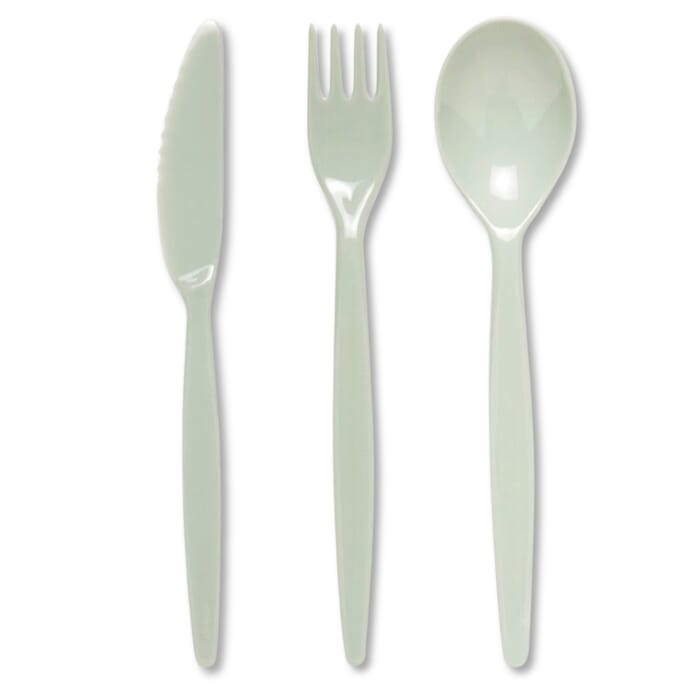 - Complete antibacterial cutlery set including knife, fork, and spoon