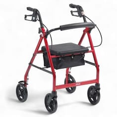 A-Series 4-Wheel Rollator with padded bag and seat gives a secure and snuggly resting place.