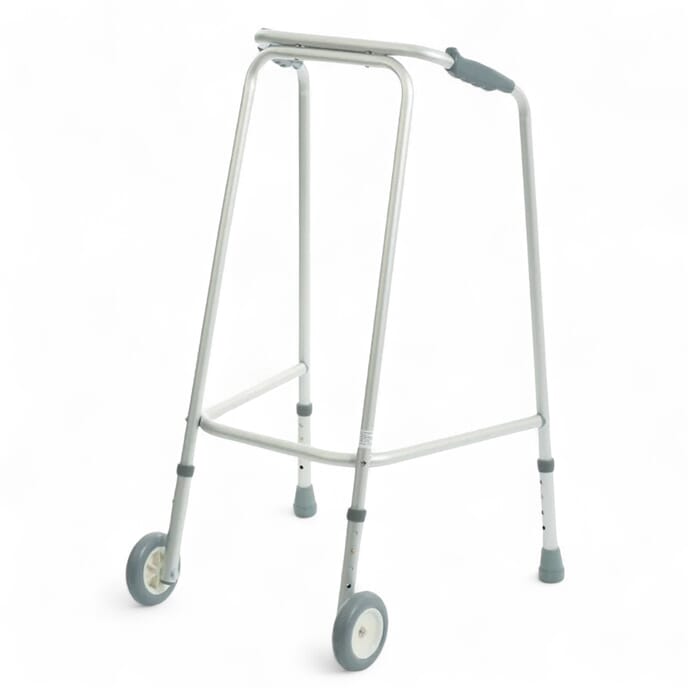 The Wheeled Walking Frame is a lightweight, durable mobility aid designed to support safe and confident walking. Ideal for use indoors, it features front wheels for smooth movement and rear legs with rubber tips for added stability and control.
