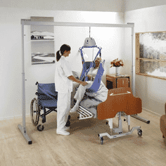 The Easytrack Freestanding Gantry is designed to be paired with the Oxford Voyager Portable Hoist which is available as one of the options here.