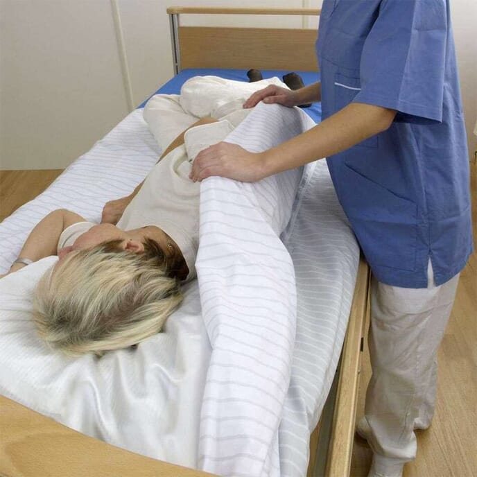 - Two-way draw sheet aids carers in repositioning with minimal effort