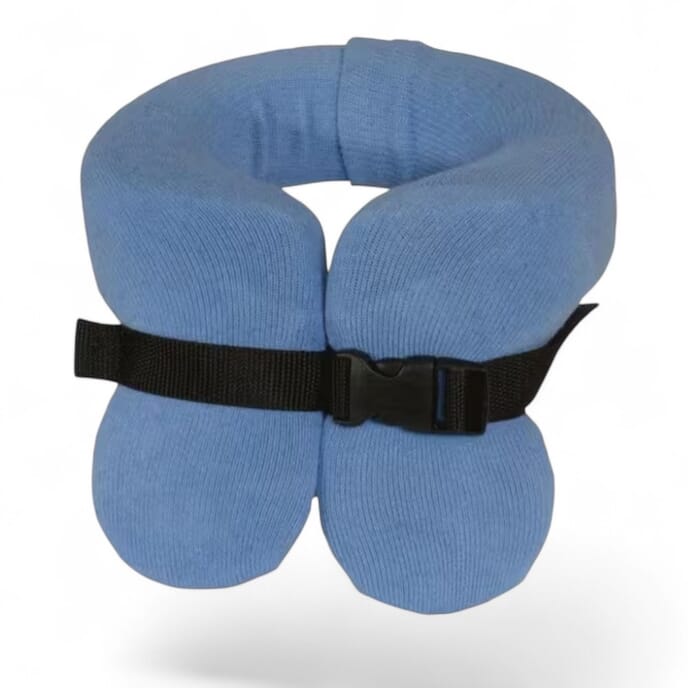 The Hensinger Head Support is a thoughtfully designed, wrap-around foam collar that gently cradles the head and maintains mid-line alignment—crucial for improving breathing, swallowing, and overall comfort. It is intended for use in combination with a seating harness or chest support to promote proper head positioning without excessive restriction.