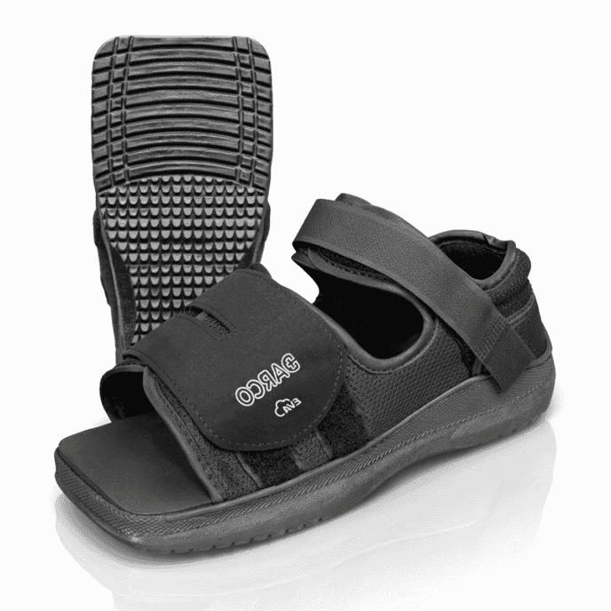The square-front toe box offers additional protection against accidental knocks while also providing extra room for dressings. A built-in MetaShank protection plate adds stability and support beneath the metatarsal heads, while the rocker sole encourages a smoother walking motion and helps reduce pressure on the heel and forefoot during recovery.