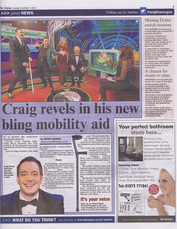 South East Today on BBC1 covers Essentialaids.com's bling 'Strictly' crutches