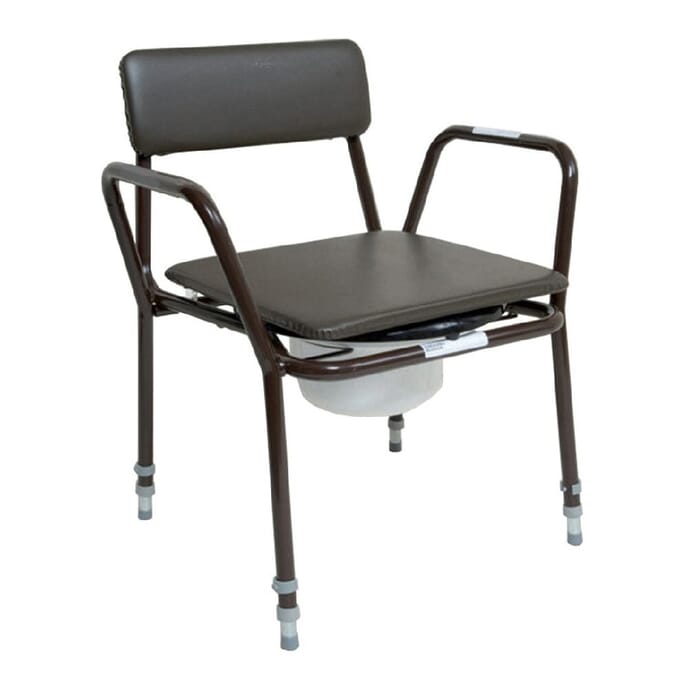 Height-adjustable legs allow the commode to be set to suit individual needs, while the splayed leg design helps improve stability during use. The frame is easy to clean and suitable for use in both home and care environments. Its stackable design also makes it practical for settings where storage space is limited.