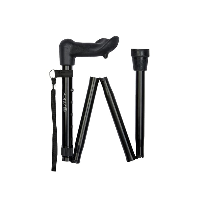The Short Anatomical Handle Folding Stick is a fashionable, functional and foldable walking aid designed for everyday support. Made from strong yet lightweight aluminium, it folds neatly into four sections for easy storage and transport.