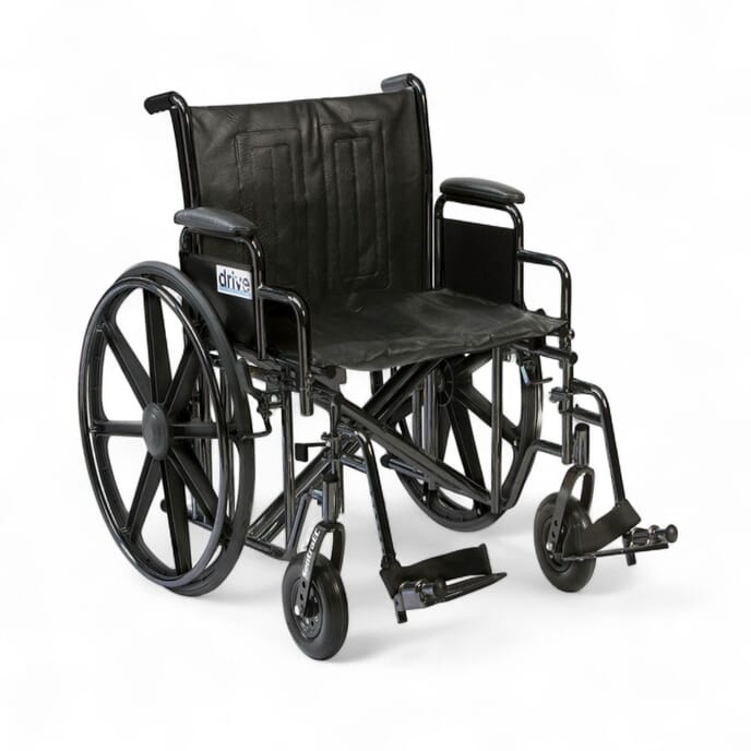 Available in three seat widths (20", 22", and 24"), the Sentra Bariatric Self Propelled Wheelchair is a dependable choice for plus-sized users who value independence, safety, and comfort.