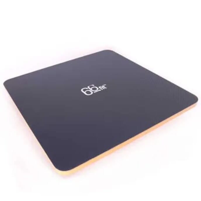 The board features a non-slip top surface to provide a secure grip for the feet during use. A curved wooden base allows smooth forward and backward rocking, enabling controlled and repetitive exercise.