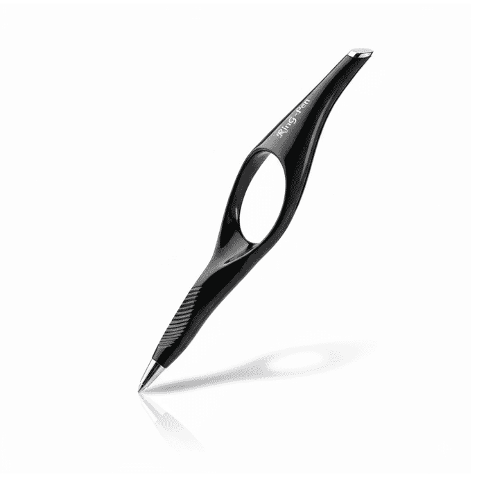 The Ring Pen is a thoughtfully designed writing aid for people who find standard pens uncomfortable or difficult to control due to reduced grip strength, tremors, arthritis, or limited dexterity. By placing the index finger through the integrated ring, the pen is stabilised naturally, allowing the thumb and middle finger to support the barrel without the need for tight gripping or fine finger control. This significantly reduces strain, discomfort, and fatigue during writing.